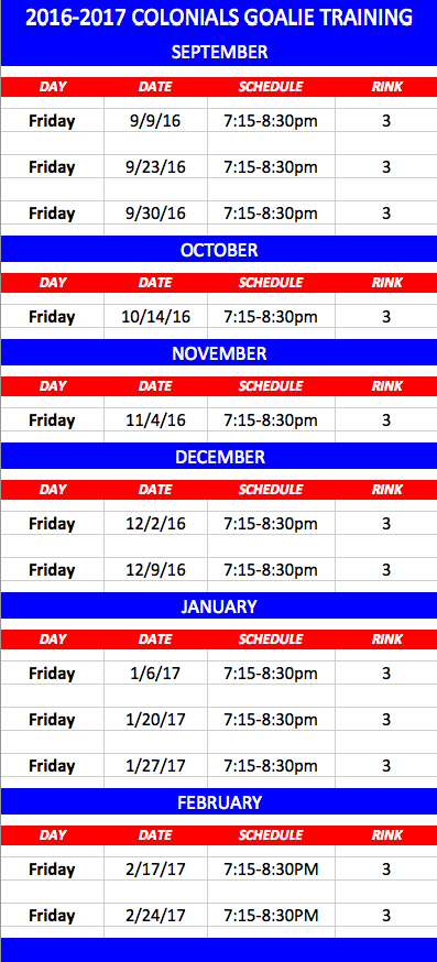 Denike Goalie Clinics By vfcolonials | September 4, 2016 Denike will be holding goalie clinics at Oaks Center Ice for Squirts through Midgets. These clinics are NOT offered to Mites. Each clinic is open to every level. See below for dates and times. Posted in Clinics, Denike